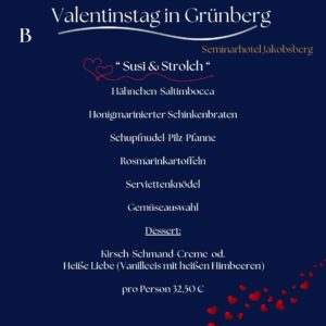 + Variation B – „Susi und Strolch“ romantisches Dinner im Hotel am Jakobsberg nebenan mit Buffet für 2 Personen (64€)