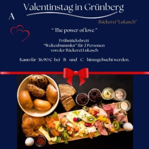 + Variation A – “ The power of love“ Frühstücksbrett der Bäckerei „Lukasch“ für 2 Personen am Sa, den 14.2. um ca. 9 Uhr an das Wohnmobil (36,90€)